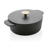 Exclusive tri-ply copper sauté pan with lid. The first layer is the copper exterior, and the interior consists of a layer of aluminium and a layer of stainless steel, which make it easy to clean. The copper and aluminium layers conduct heat well,