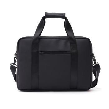 Modern and clean design computerbag. Functions and form comes together, besides the ordinary computer pocket this bag also has place for pens, documents and other belongings. The bag is produced in a water repellent material, with both shoulder strap and carry handles. It also includes an attached band on the backside, so it fits your trolley when travelling.