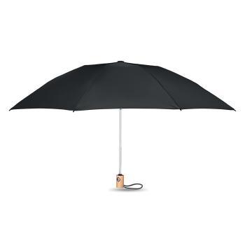 Umbrelă reversibilă de 23 inch, pliabilă în 3 secțiuni, cu deschidere/închidere automată, material 190T pongee RPET. Spițe din fibră de sticlă. Mâner din bambus și curea din bumbac. Include o husă RPET asortată. Bambusul este un produs natural, în consecință pot apărea diferențe de culoare, dimensiune sau desen.