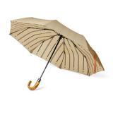 Stay dry in style on the go with our classic and understated 21-inch umbrella. The double-layer 190T recycled pet fabric provides ample protection against rain, while the beautiful inside lining adds a touch of elegance to the design. The umbrella features fibreglass ribs and frame, ensuring durability and longevity. The umbrella handle is made from composite wood, adding a touch of sophistication to the design. The umbrella also features an auto-opener for convenience and a manual closing option. The storing pouch in matching fabric adds an extra layer of protection when not in use. Features AWARE™ tracer technology, validating the genuine use of recycled materials, emphasising our commitment to responsible sourcing. Including FSC®-certified kraft packaging.